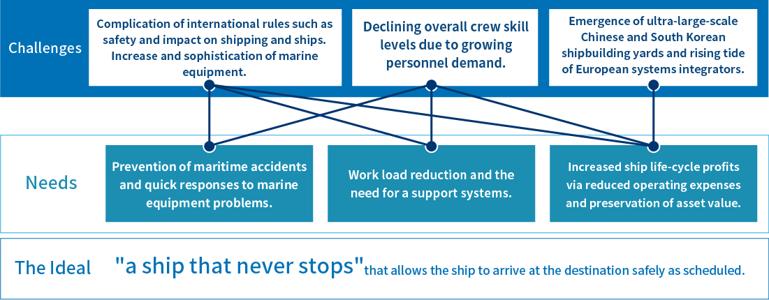 ● Collected ship-related data is utilized in the development of applications for responding to problems and malfunctions, maintenance support, and more.